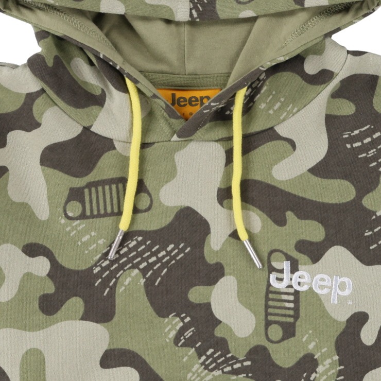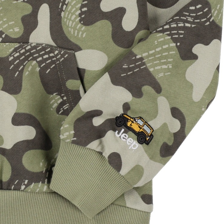 胸のロゴや袖口の車の刺しゅうなど、Jeepブランドならではの遊び心あるデザインが魅力的です。