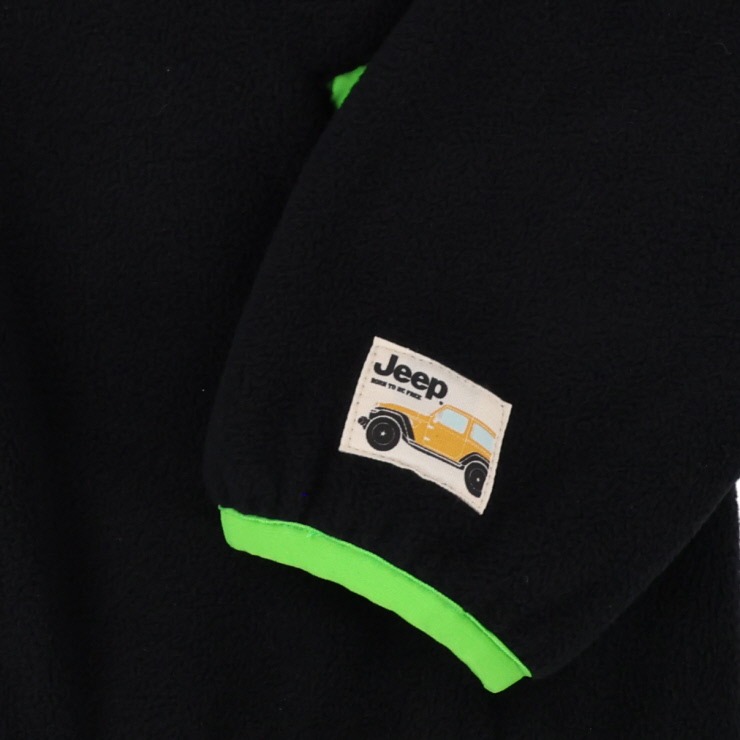 胸のロゴや袖口の車の刺しゅうなど、Jeepブランドならではの遊び心あるデザインが魅力的です。