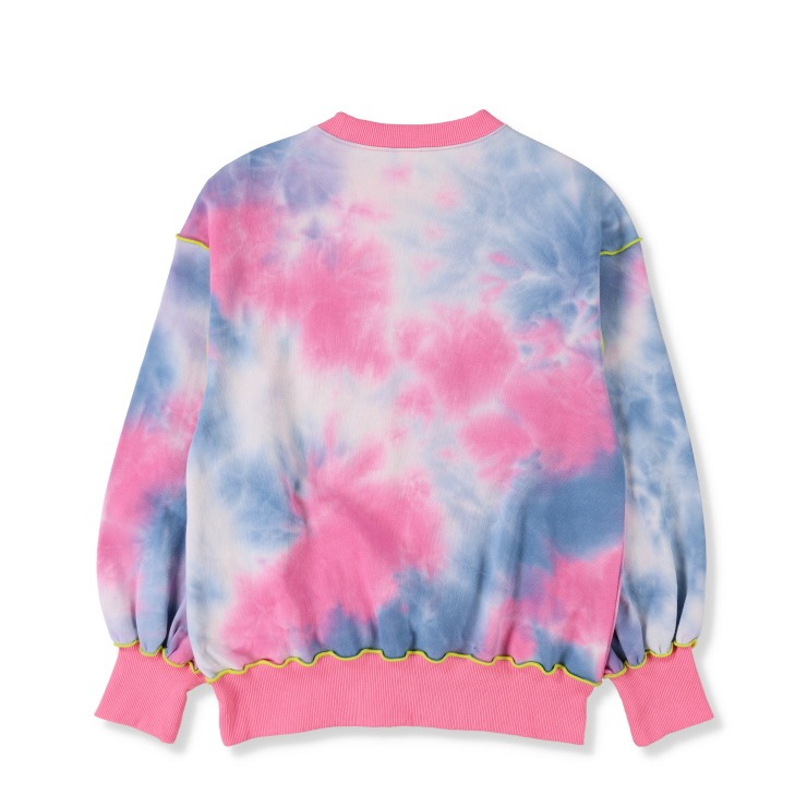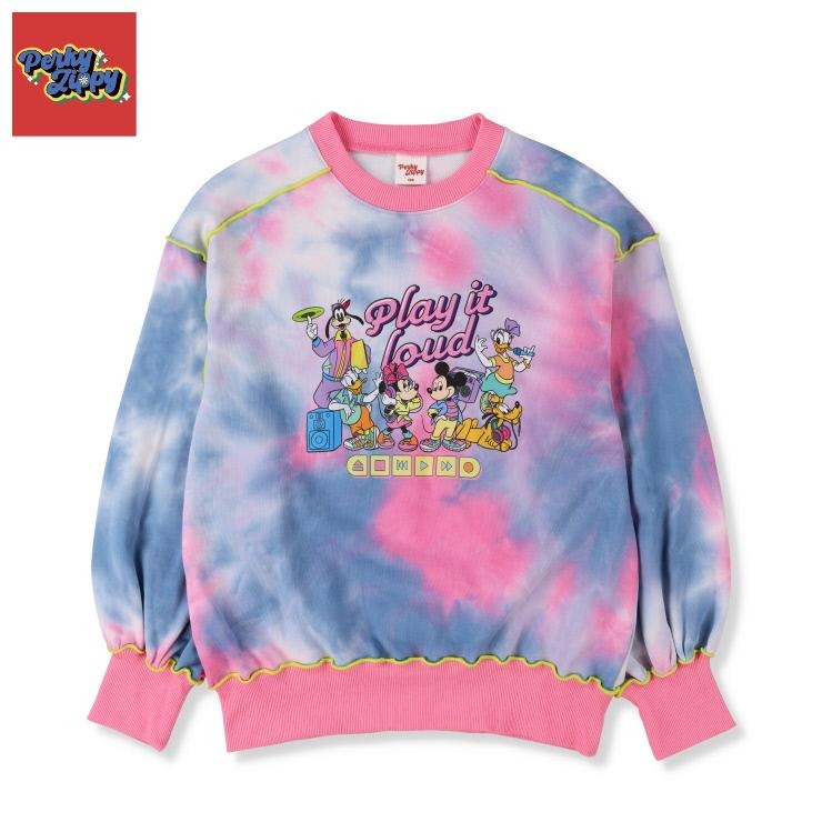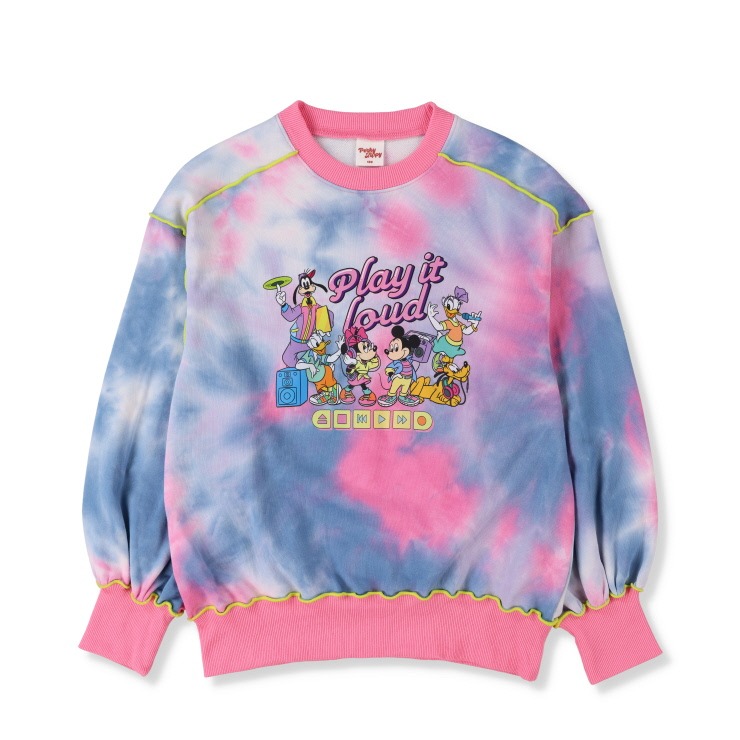 タイダイプリントにメロウ刺しゅうがアクセントになっています。「ミッキー&フレンズ」のポップなプリントがかわいいです。