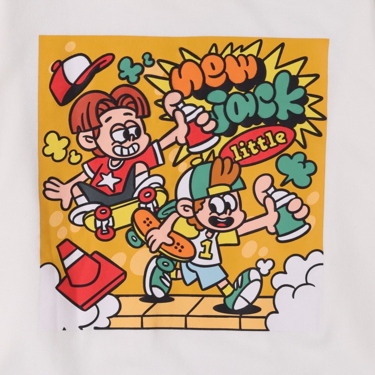 かわいい子供たちをポップでアメリカンなタッチのイラストで描いたデザインです。
