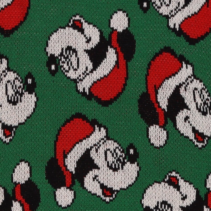 サンタさんの帽子をかぶった「ミッキーマウス」のフェイスモチーフがいっぱいのかわいい総柄デザインです。