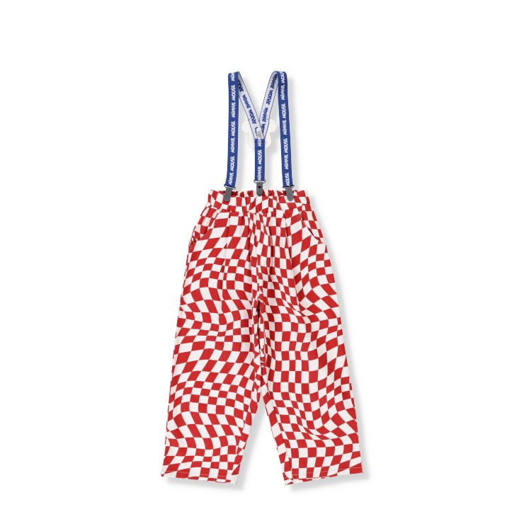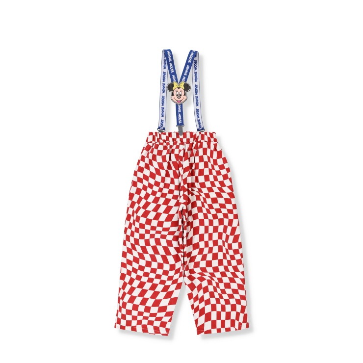 ポップな総柄プリントになっています。ロゴのサスペンダーには「ミニー」のワッペンがついています。