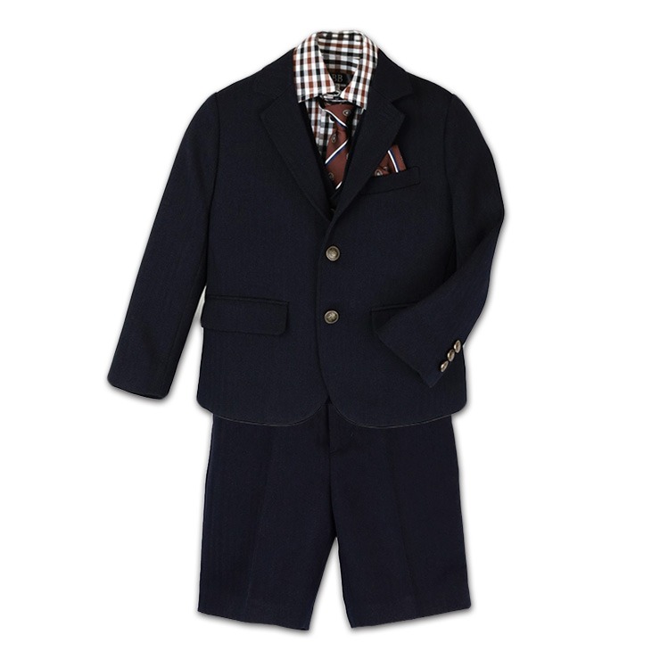 ハーフパンツが入ったスーツセットです。シーンに合わせてネクタイと蝶ネクタイを使い分けられます。