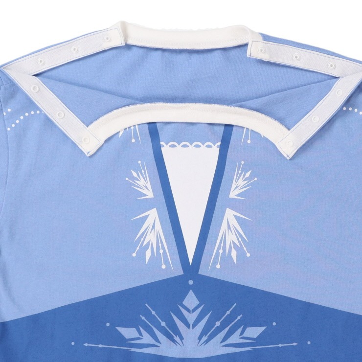 また、大きく開くことで顔周りの医療的ケアに引っかかりにくくなっています。抱きかかえた時に背中が出ないように着丈を長めにしてあります。