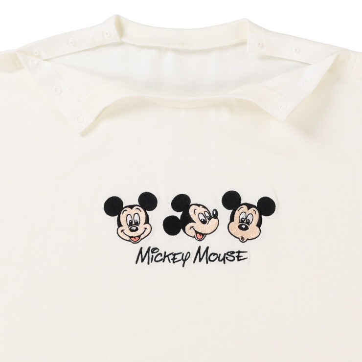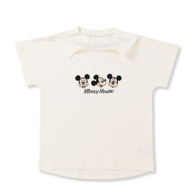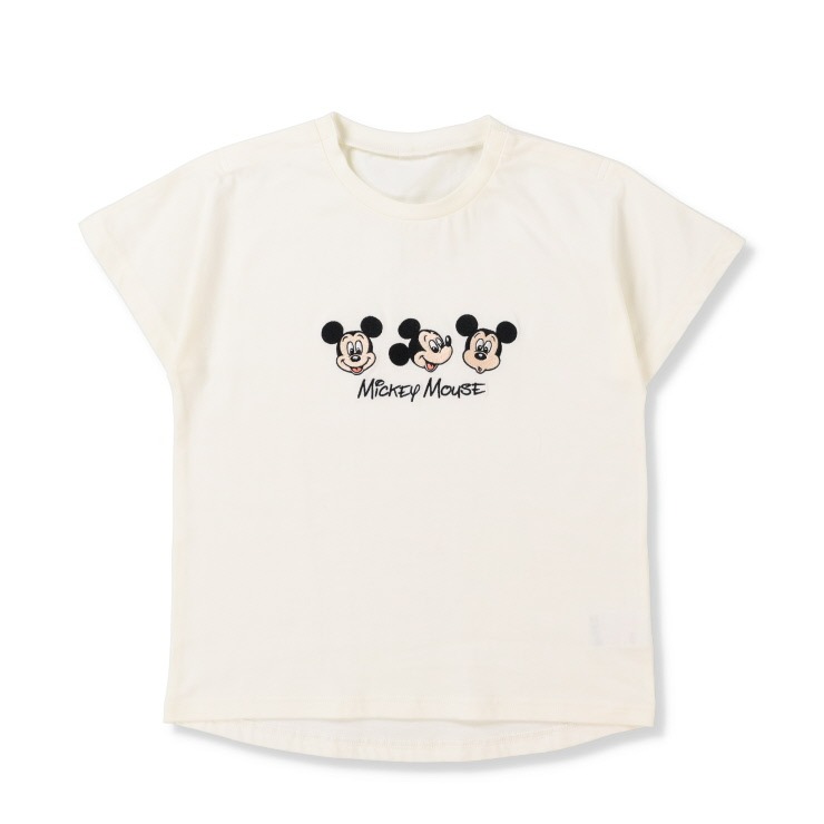 ミッキーのポップな表情が3つ並んだドルマンスリーブTシャツです。