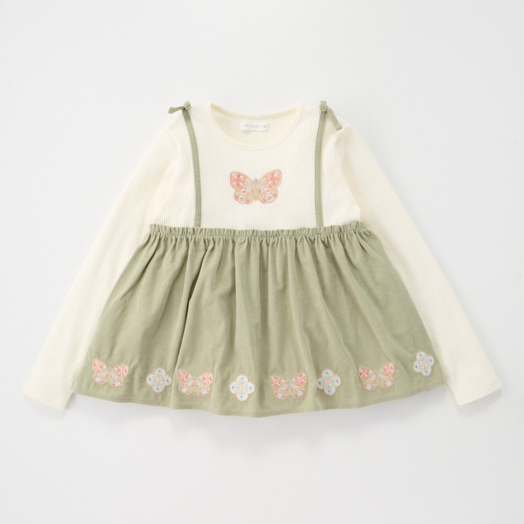 重ね着風のデザインとアイシングクッキーの刺しゅうがかわいいトップスです♪