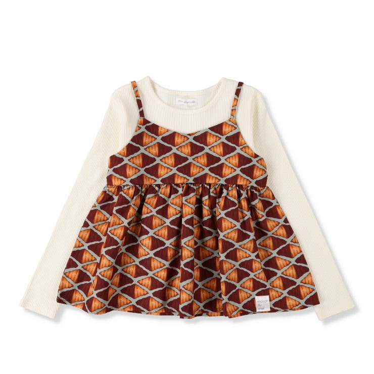 おいしそうなクロワッサンをプリントした重ね着風のトップスです。