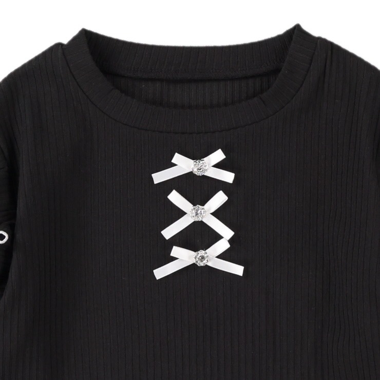 胸元と袖口のミニリボンがアクセントで、一枚で可愛さ抜群のアイテムです。