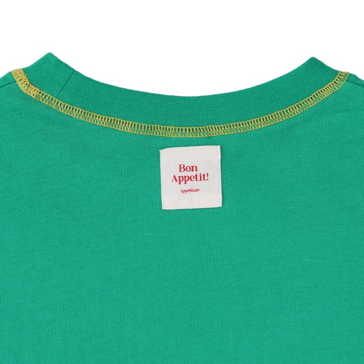 大きなロゴプリントにステッチの配色デザインがアクセントになっています。