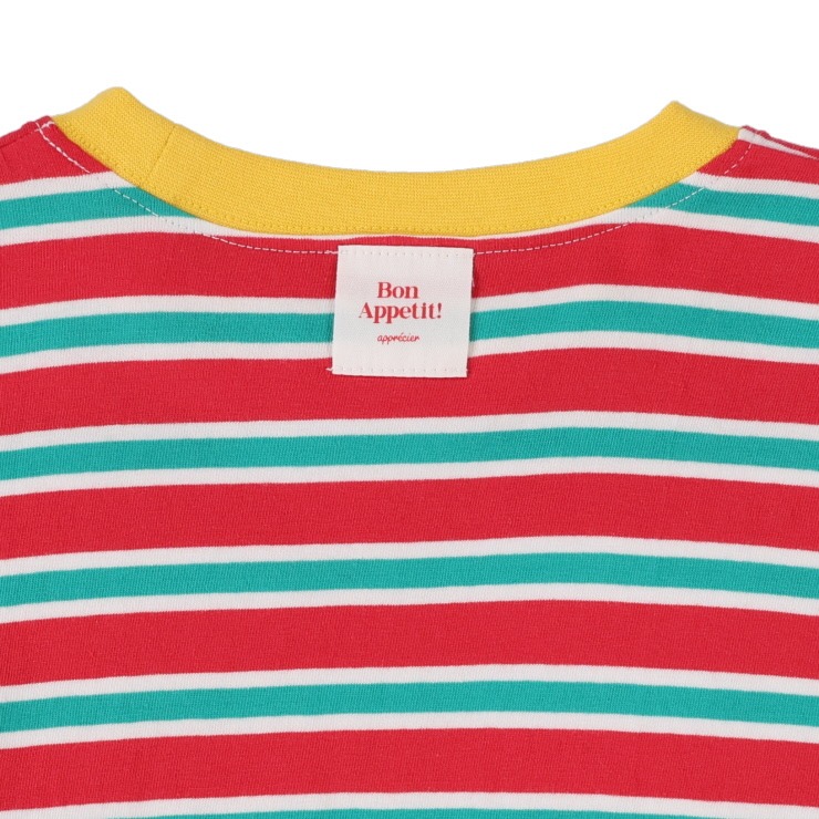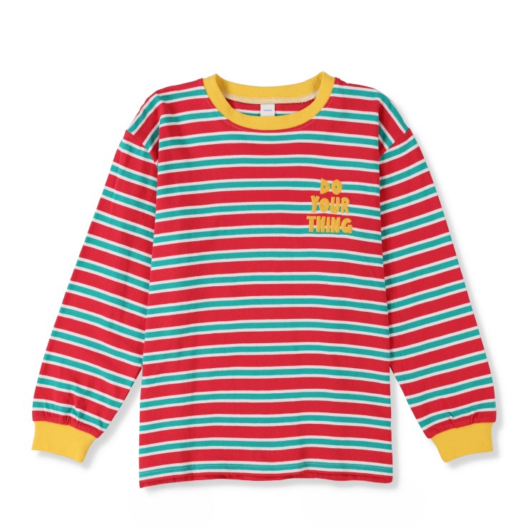 マルチカラーのボーダー柄にロゴ刺しゅうがアクセントになっています。