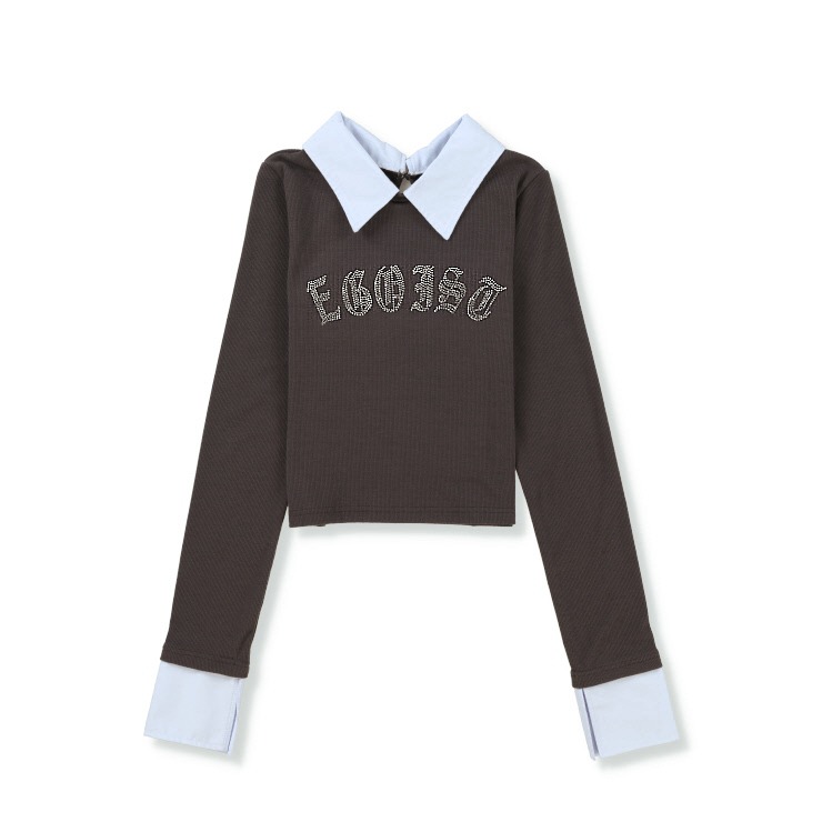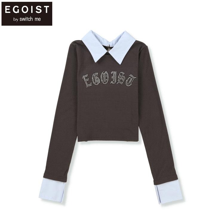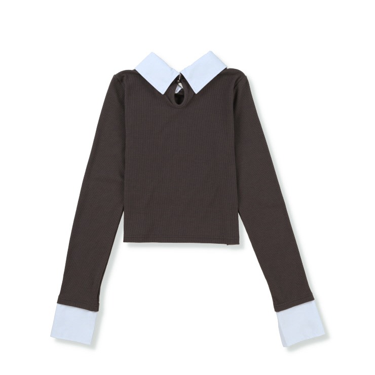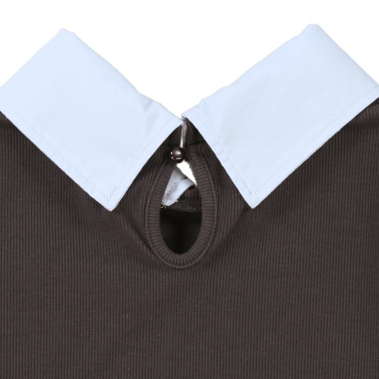 袖と衿部分にシャツをレイヤードしたように着用できる1枚。