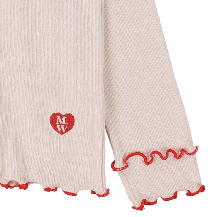 すっきりとしたデザインにメロウ刺しゅうの配色デザインがかわいいです。