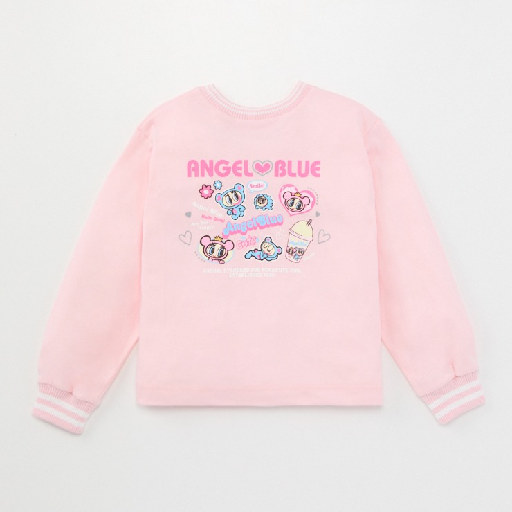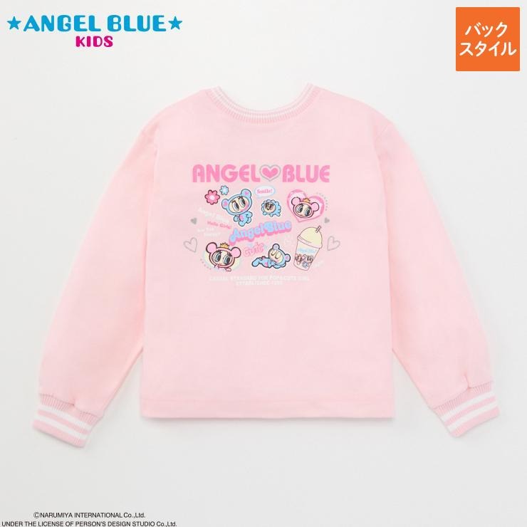 「エンジェルブルーキッズ」ステッカー風プリントトレーナー。