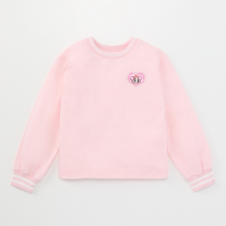 フロントのハート型ラインストーンや、ステッカーを貼ったようなプリントが遊び心のあるデザイン。