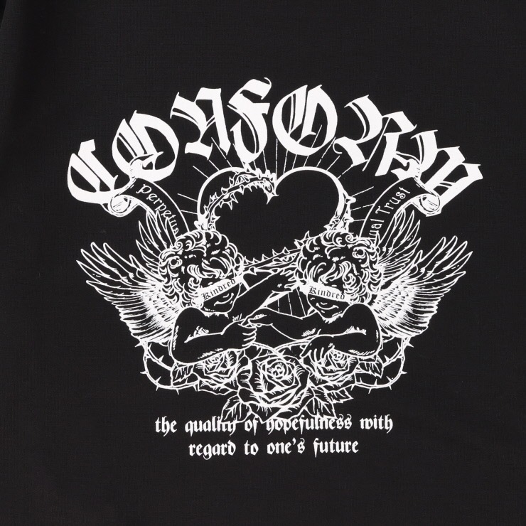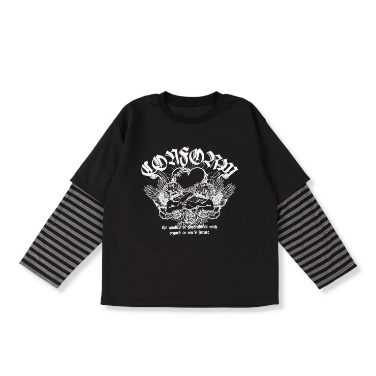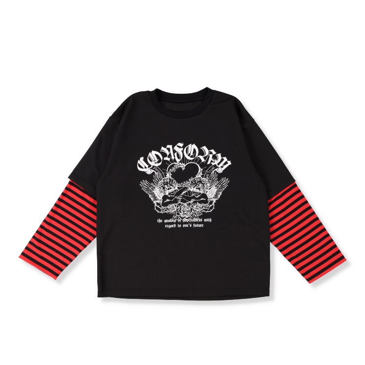 ボーダー袖がロックイメージの重ね着風トップスです。