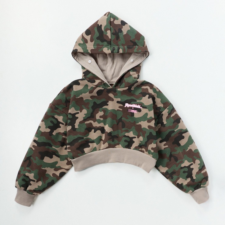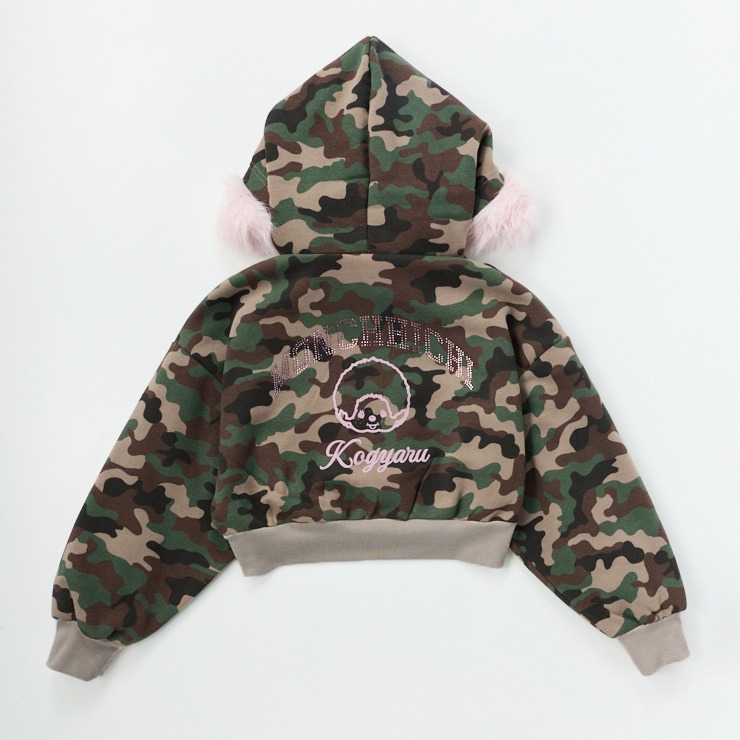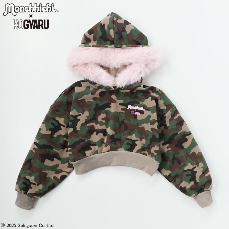 迷彩総柄とフードのフェイクファーがミリタリーギャルテイストなプルオーバー。