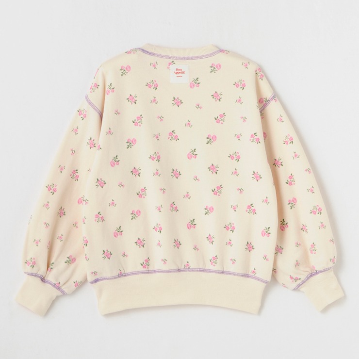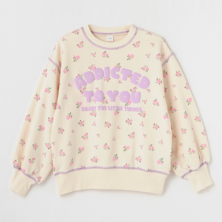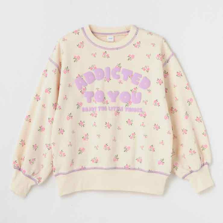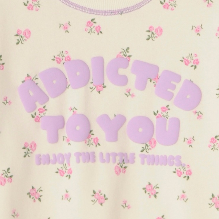 小花柄の総柄プリントにロゴプリントがのったかわいらしいデザインになっています。