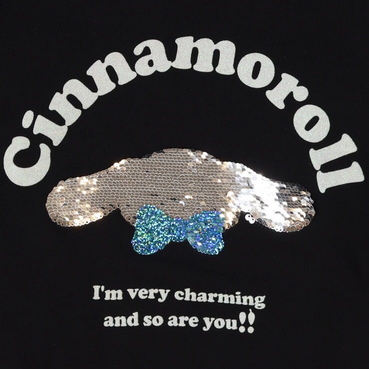 胸にスパンコールとラメプリント&袖にはレースリボンの