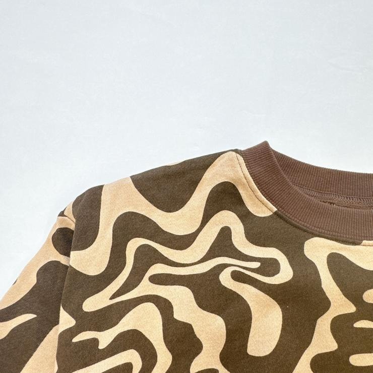 ブラウンカラーのおしゃれな総柄プリントデザインになっています。