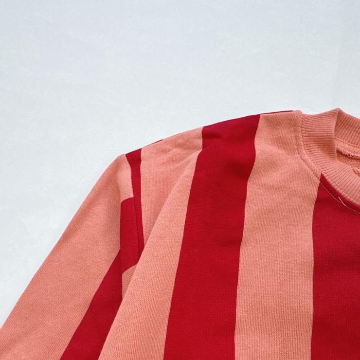 ピンクのカラー使いと大きめのストライプ柄がかわいいです。