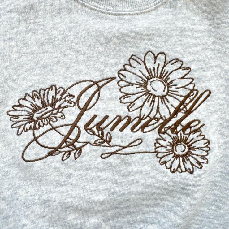 ガーリーなお花と英字の大人っぽいモチーフの刺しゅう使いがおしゃれです。