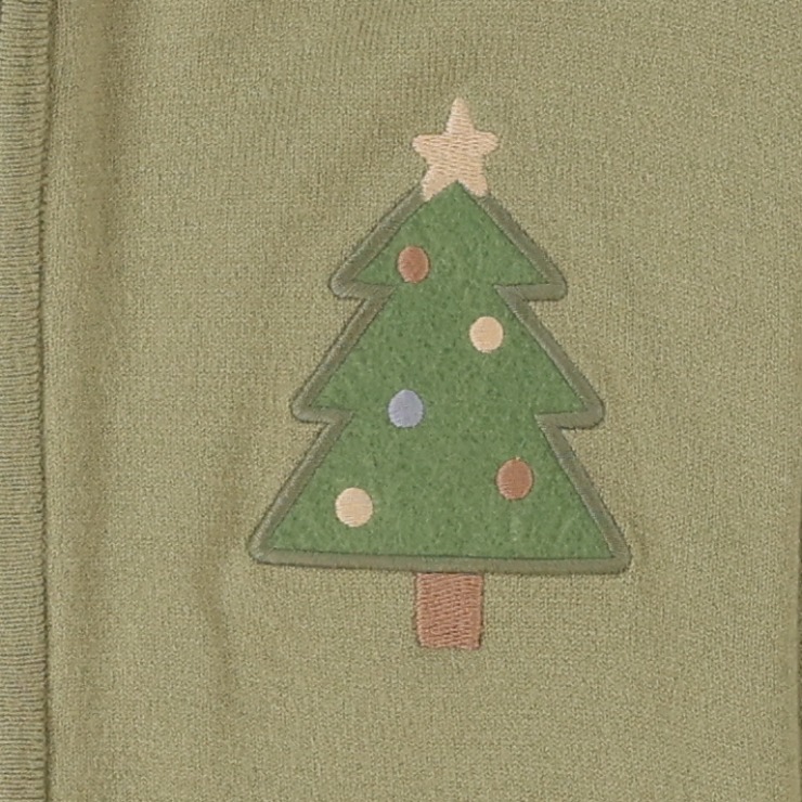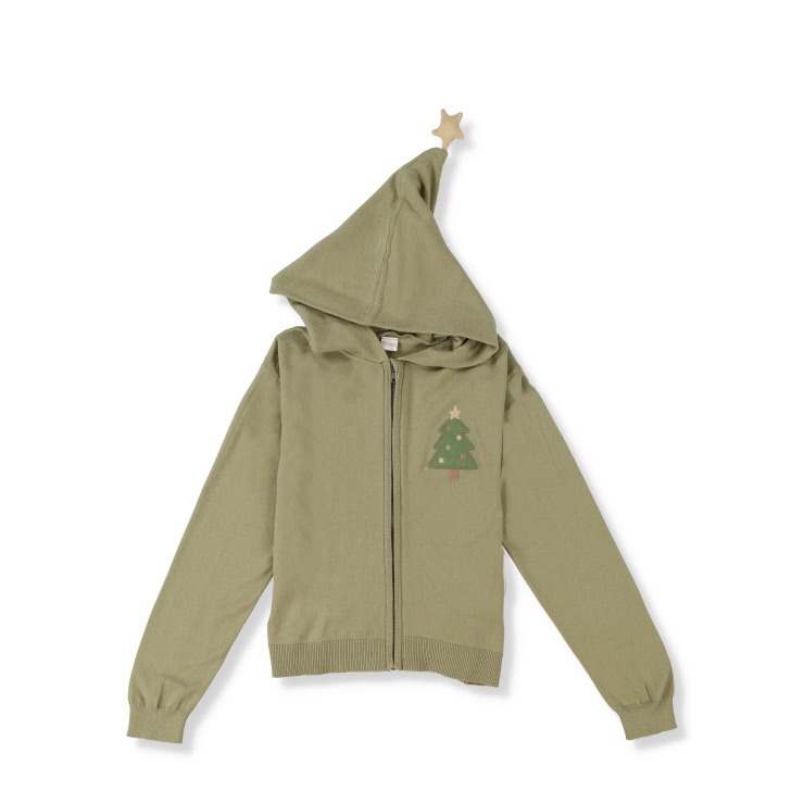 クリスマスツリーをイメージしたフード先のお星さま使いにフロントのニットアップリケデザインがかわいいです。