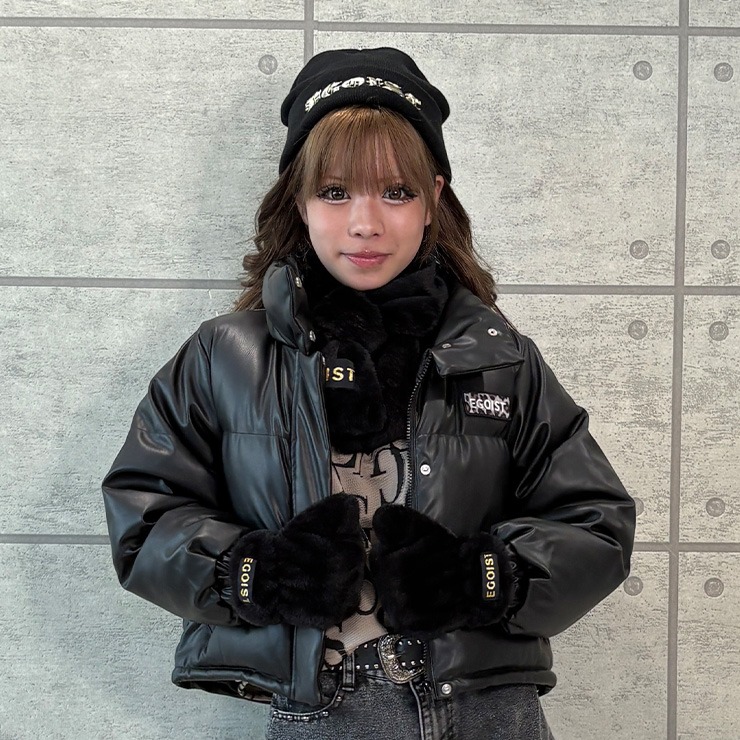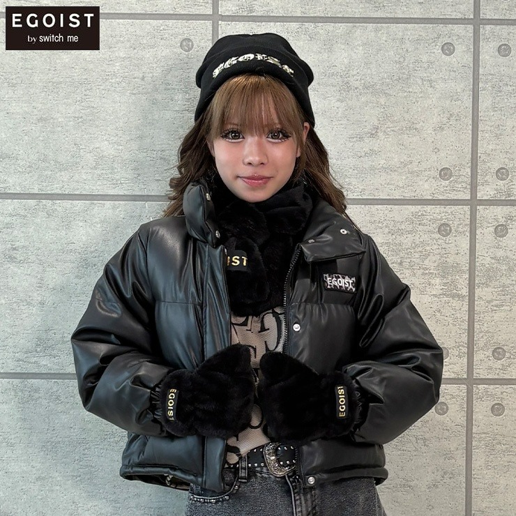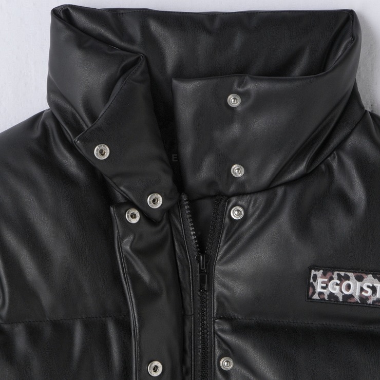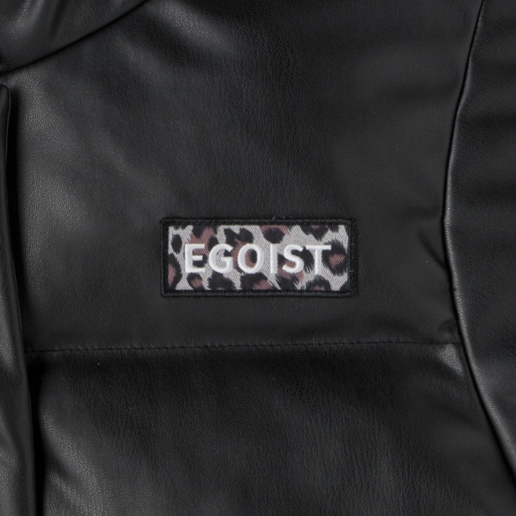 合皮素材を使用したトレンド感のある中綿ジャケット。フロントには「EGOIST」のヒョウ柄ワッペンをあしらい、シンプルながら存在感のあるデザインに仕上げています。軽くてあたたかい着心地で、防寒性も抜群。デイリー使いからお出かけまで幅広く活躍するアイテムです。