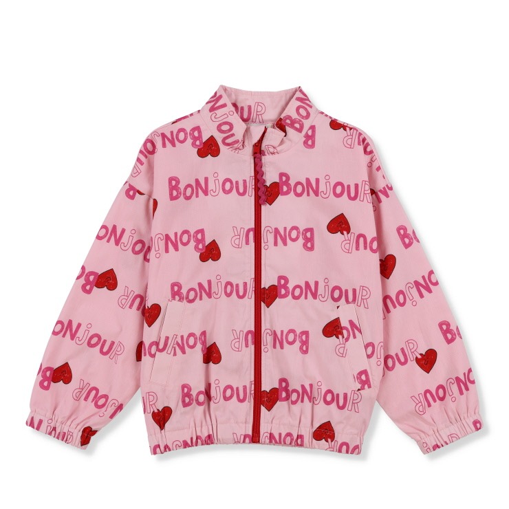 手書き風のデザインがかわいいジャケットです。女の子はハート、男の子は星で、お揃いもできちゃいます!メッシュの裏地付きで着心地も◎。