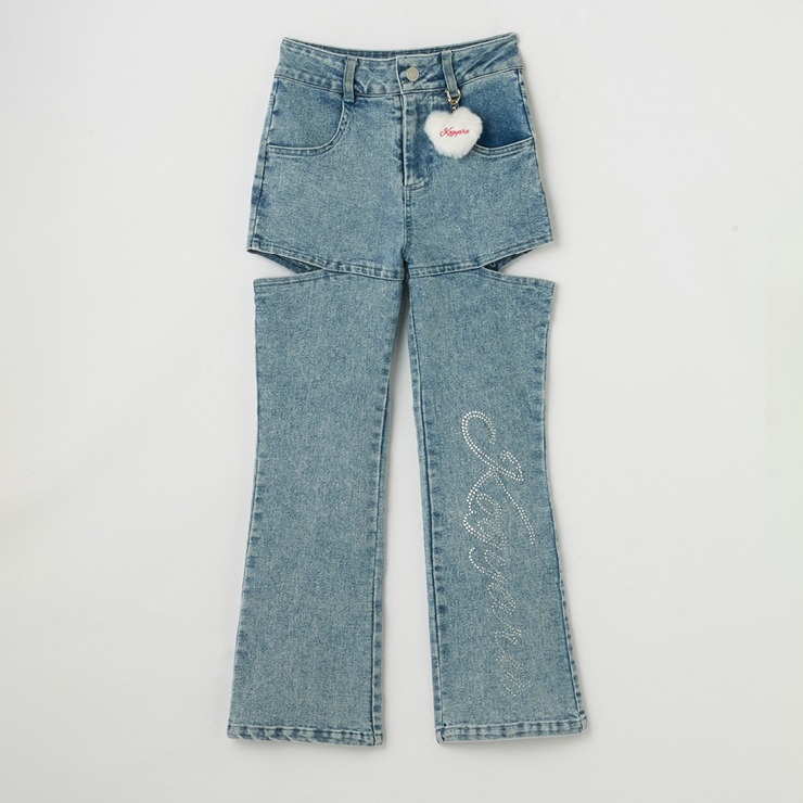 大人っぽいデザインながら、ラインストーンやファー素材のヒップポケット、ウエストについたチャームが可愛らしさを演出しています!