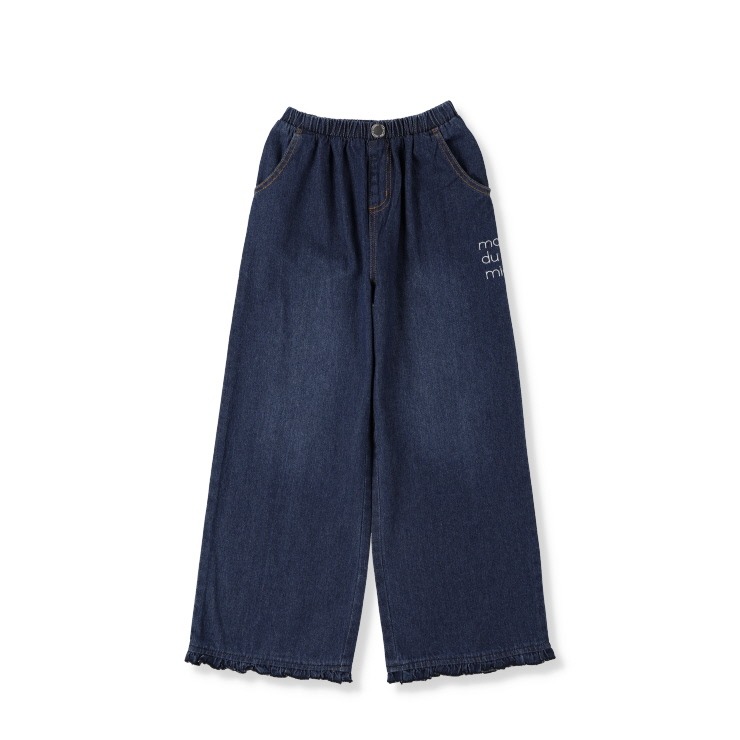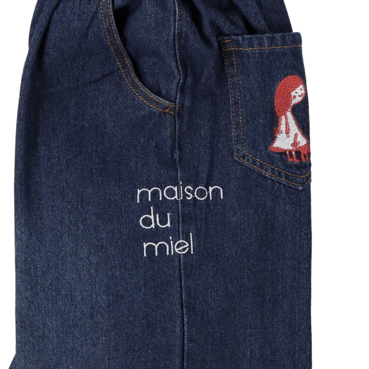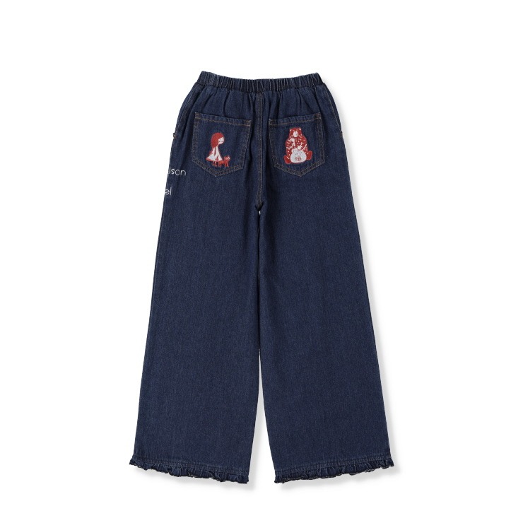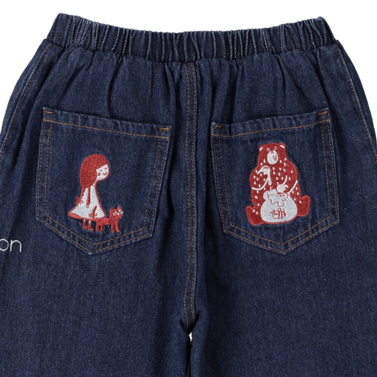 かわいい女の子とクマの刺しゅうがアクセントのデニムパンツです。