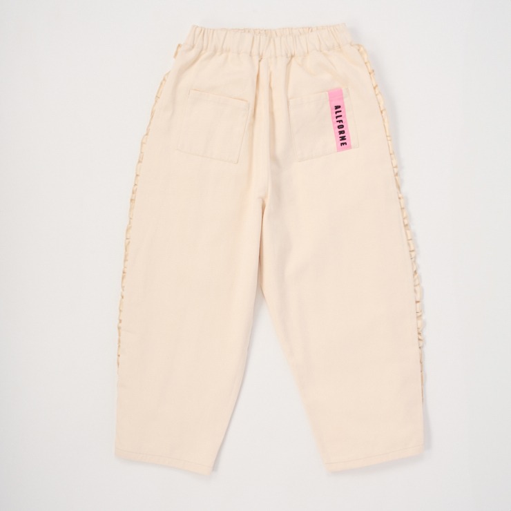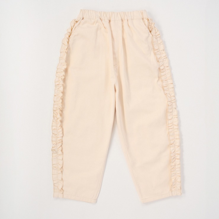 ゆとりのあるダボっとしたシルエットにフリル使いのガーリーなアクセントになっています。
