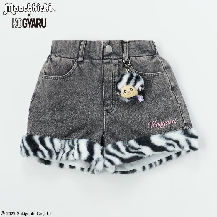 モンチッチのふわもこチャームがセットになったファー付きショートパンツ。