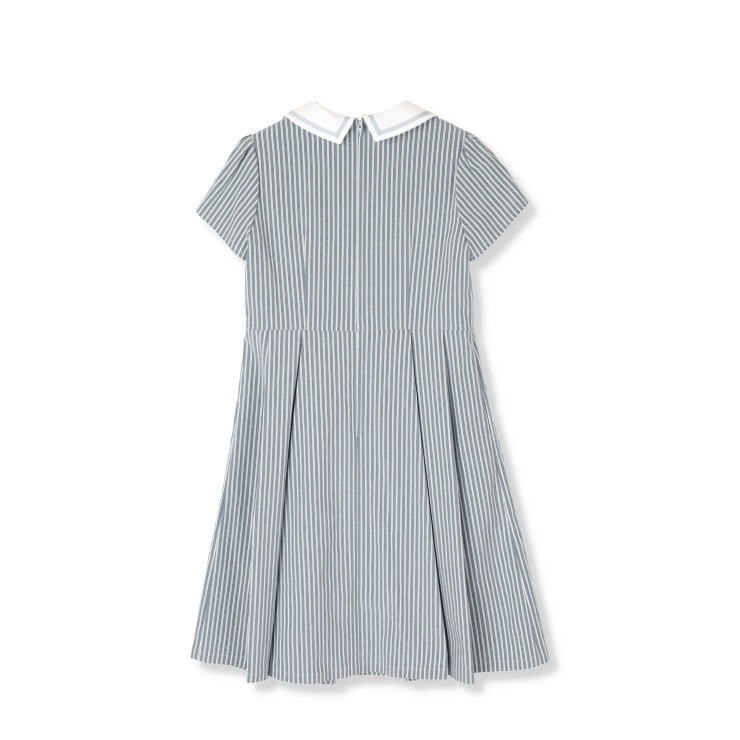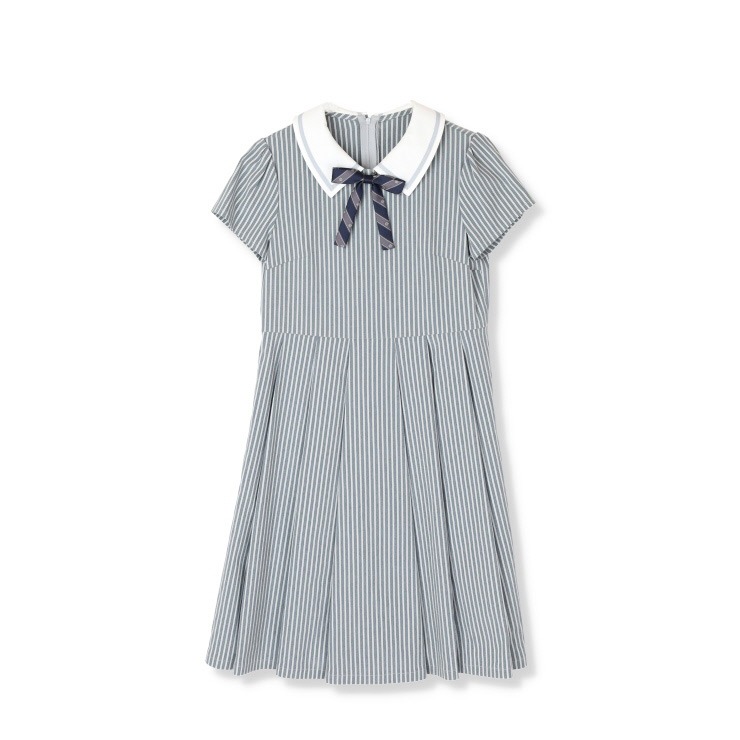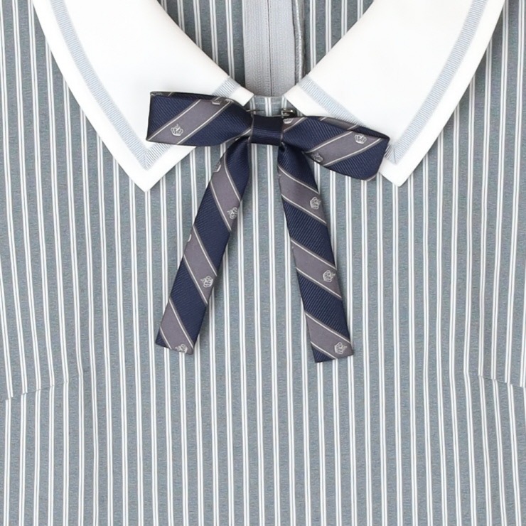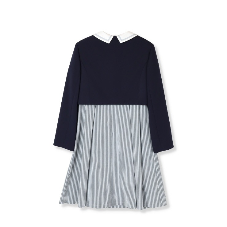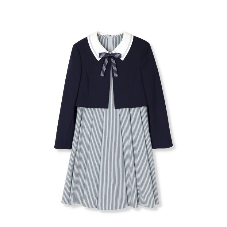 シンプルなネイビーボレロに襟付きのストライプワンピースを