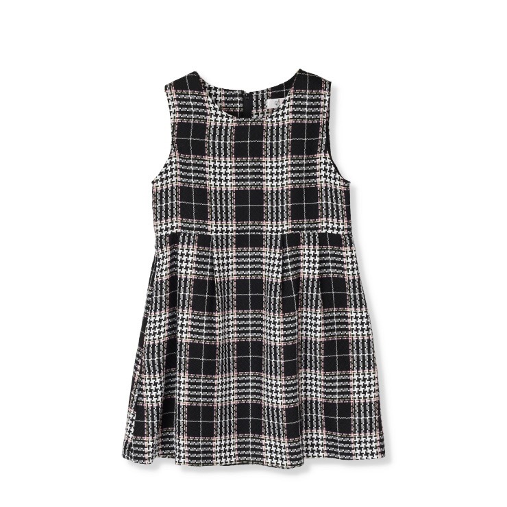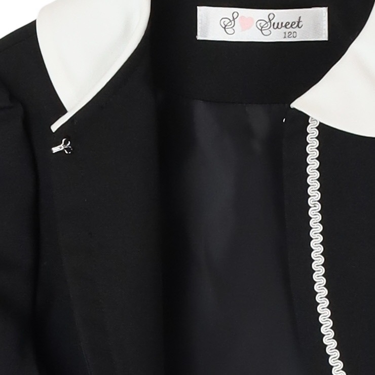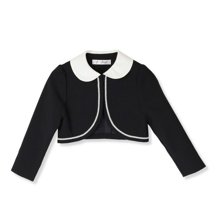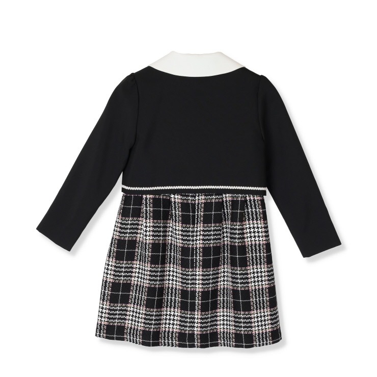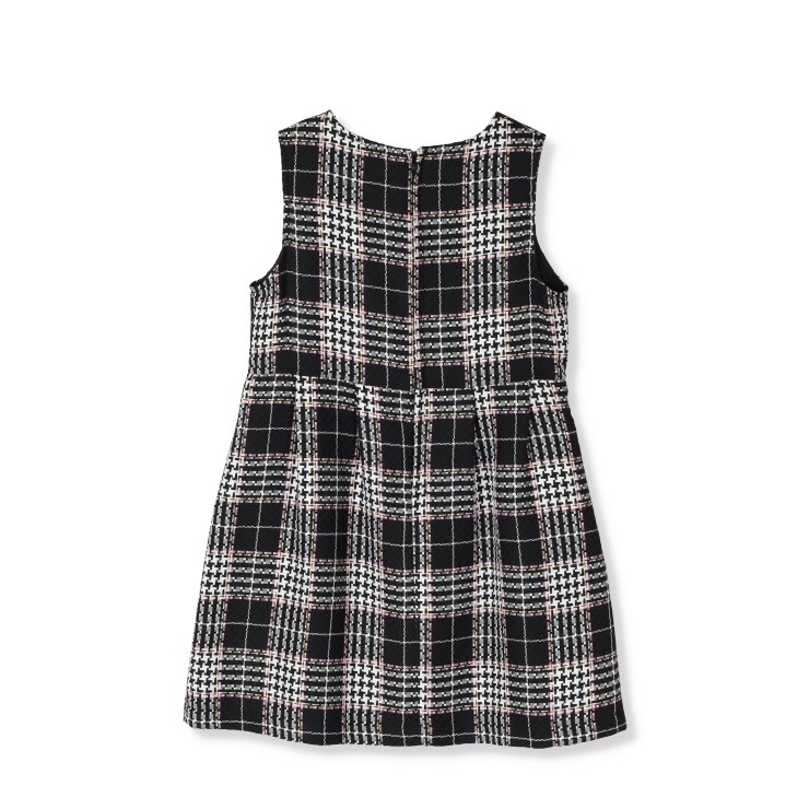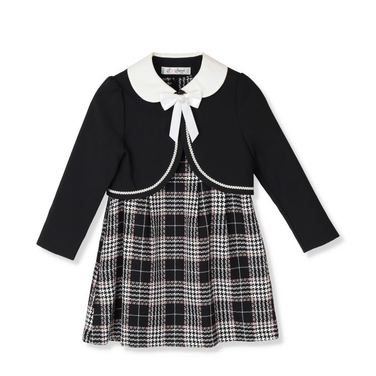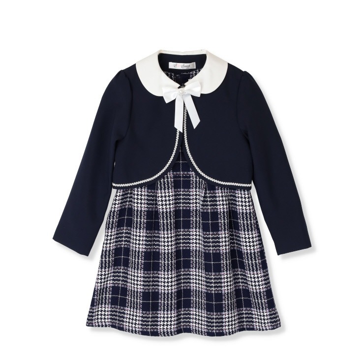 ジャンパースカートに衿付きボレロを合わせたアンサンブルです。表面変化のあるチェック柄のジャンパースカートは1枚着としても使用できます。卒園式や入学式などフォーマルシーンに適したアイテムです。ジャンパースカートにポケット有り。