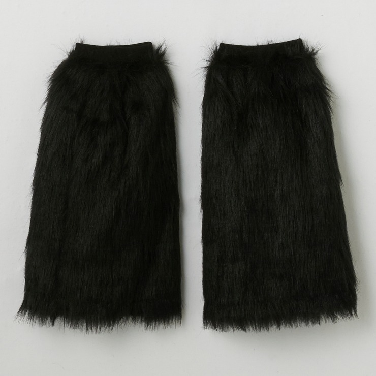 クールな印象のデニムスカパンにふわふわファー素材のレッグカバーのセットです。