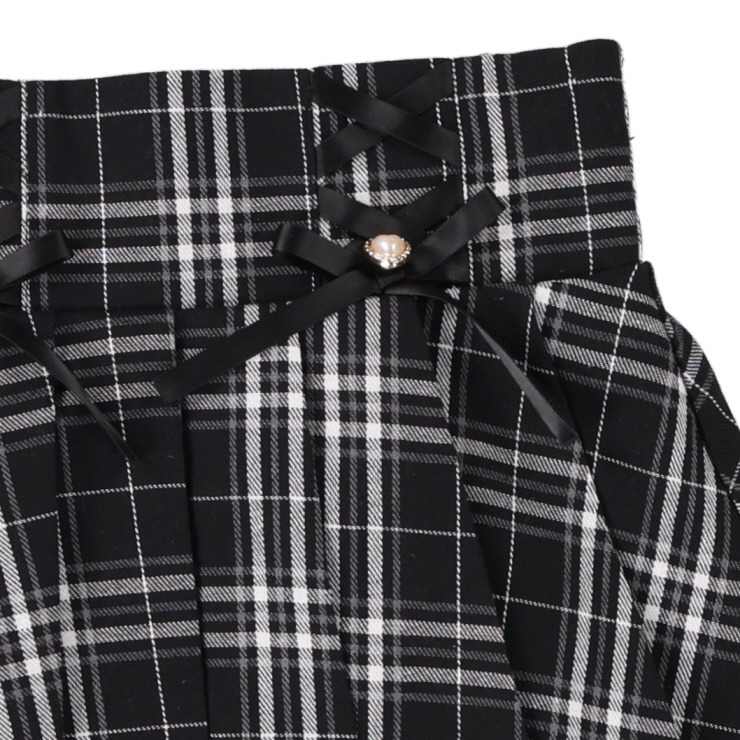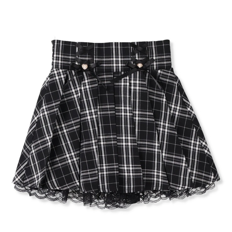 レースアップデザインとハートのパールがポイントのガーリースカートパンツ!