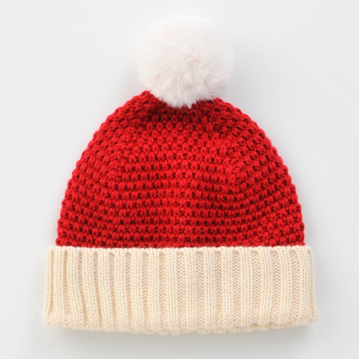 本体のぽこぽこした編地と折り返しのリブの編地のバランスがおしゃれで高見えし、クリスマスムードを盛り上げてくれます♪