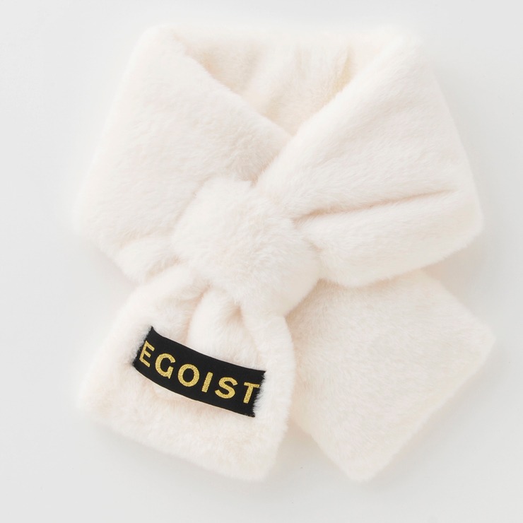肌触りのいいフェイクファーにEGOISTの金刺しゅうネームをあしらったティペット。