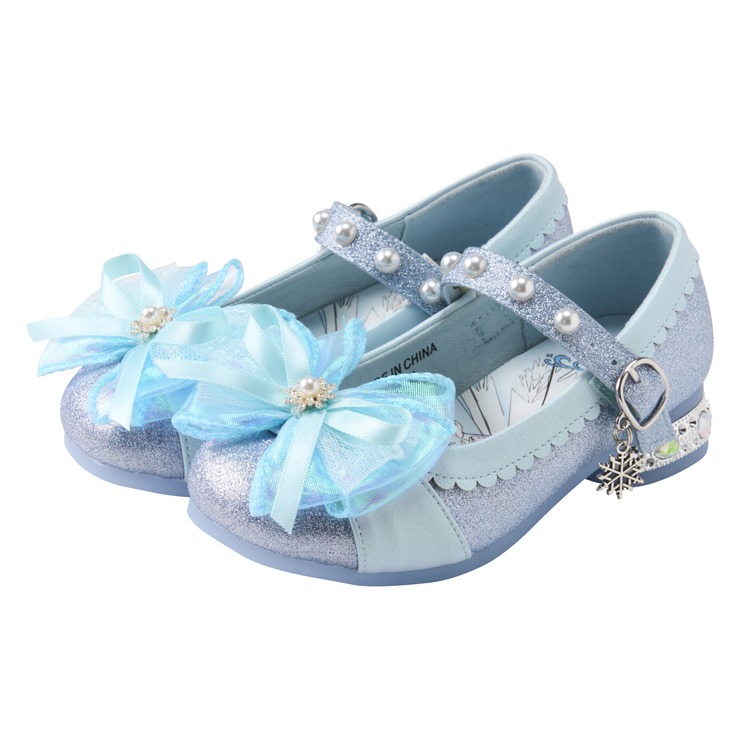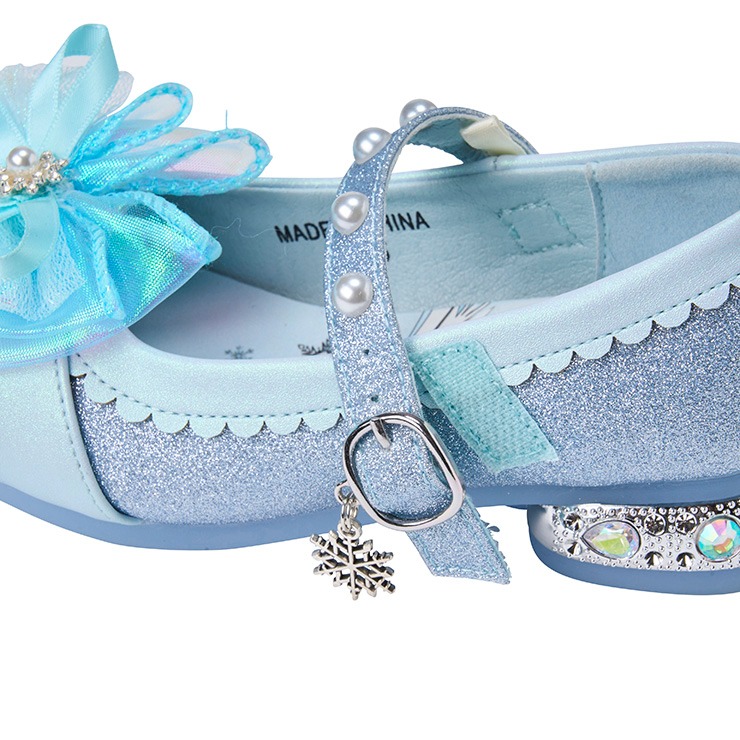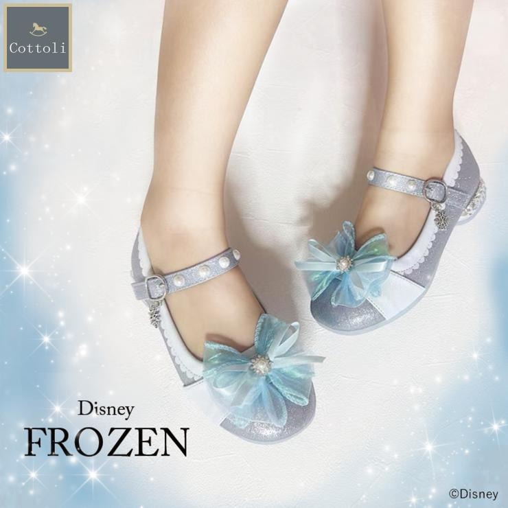 ベルト部分に雪の結晶のチャーム。つま先には、大きいリボンとビジュー付き♪