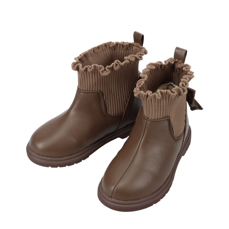 履き口のフリルがかわいいニットブーツです。