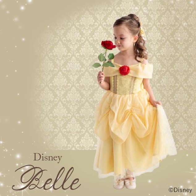 ベルのドレスを感じさせる生地感とベルトについた一輪のバラチャーム。