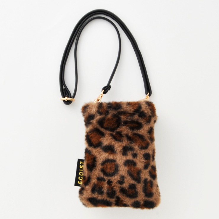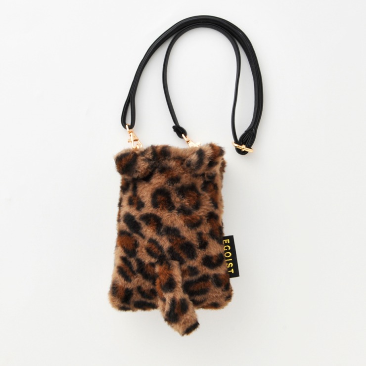 遊び心あふれる猫耳デザインに、ふわふわのヒョウ柄ファーを合わせたミニポーチショルダー。