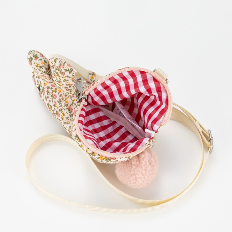 本体生地は花柄になっており、内装はギンガムチェック柄になってます♪