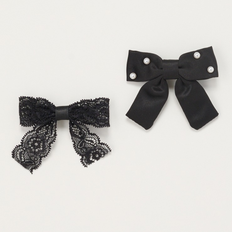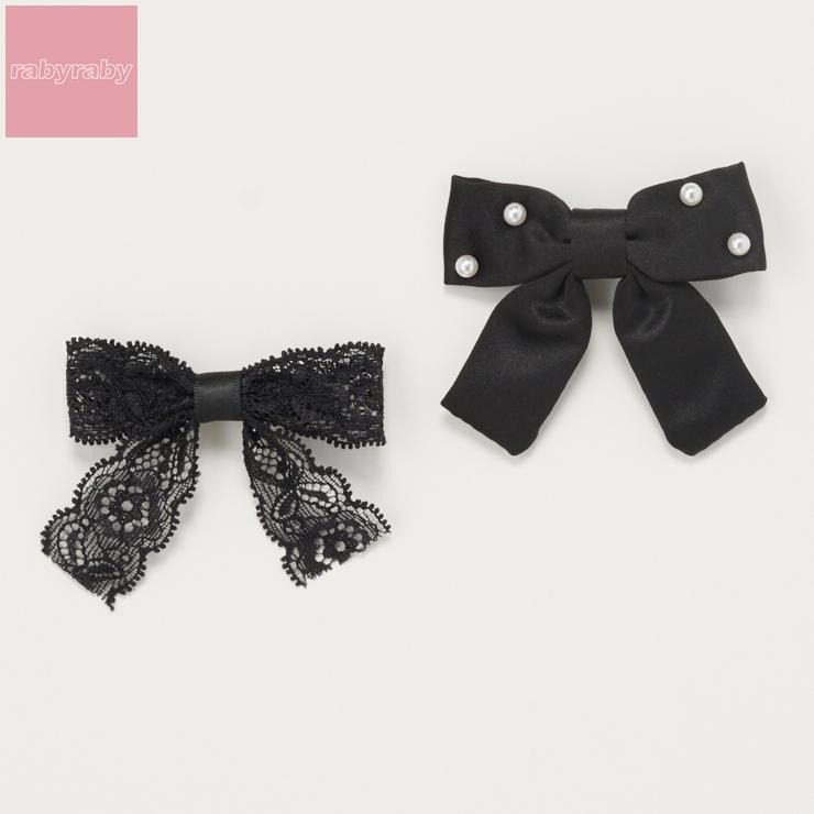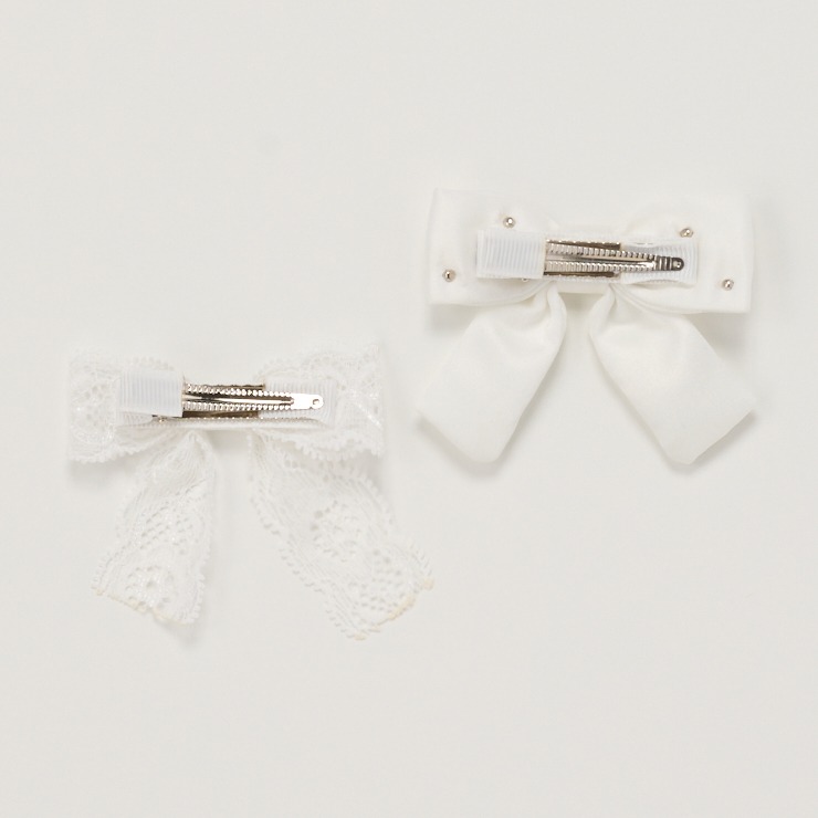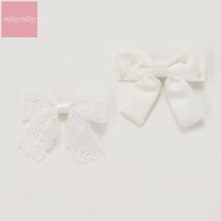 レースリボンとパール付きリボンのクリップ2点セットです。
