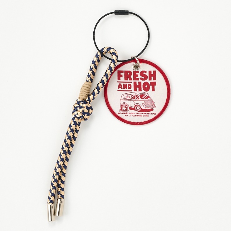 ワッペンとロープの組み合わせがおしゃれなバッグチャームです。