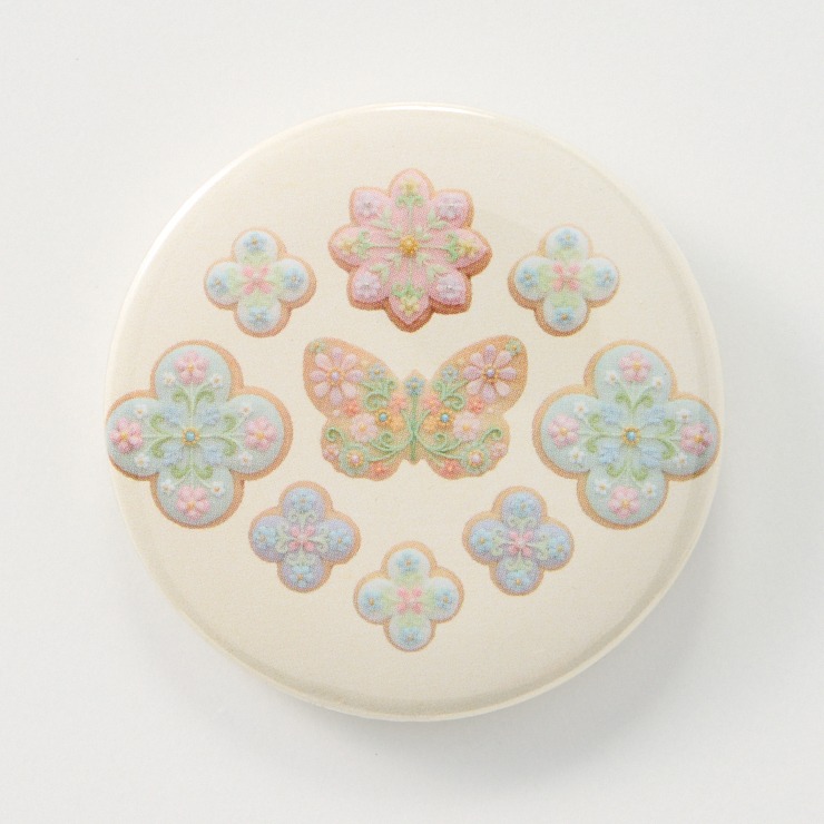 アイシングクッキー柄の缶バッチ&お花の形の缶バッチケースです♪