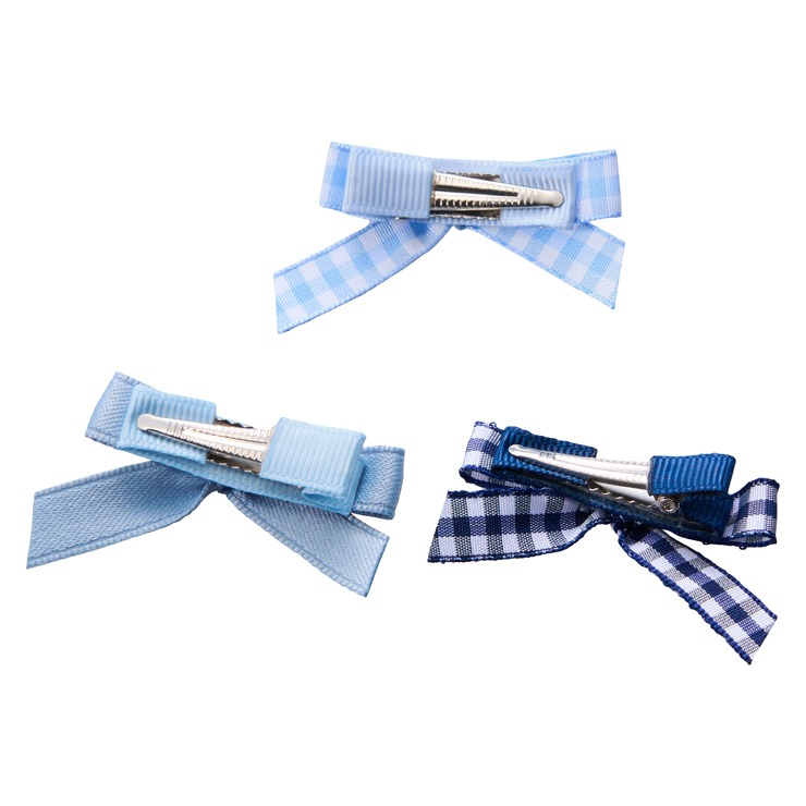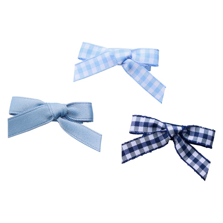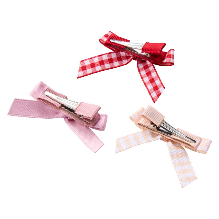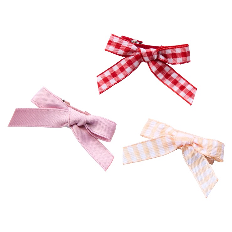 チェック柄リボンとサテンリボンのクリップ3点セットです。