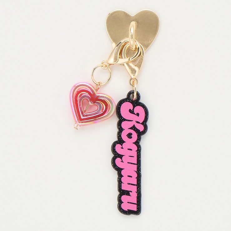 KOGYARUロゴとハートのチャームが付いたスマホチャームです。