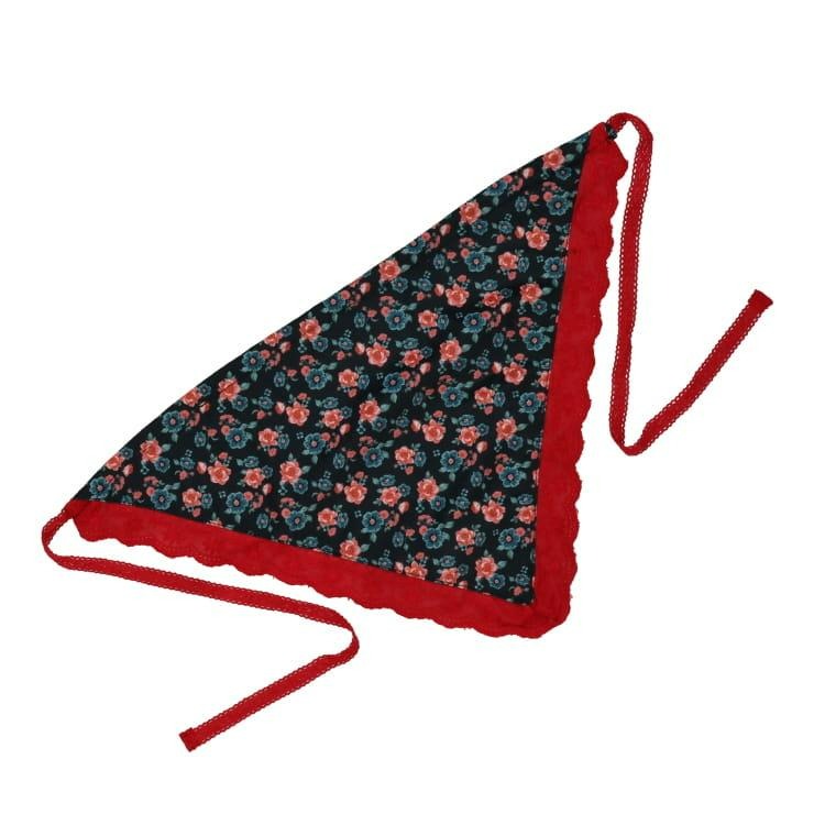 紐部分を髪の後ろやあご下に結んで着用できます。