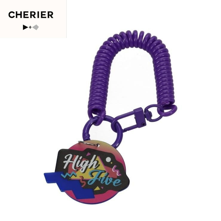 伸縮性のあるコードとフックタイプの金具で取り外しやすいアイテムです。